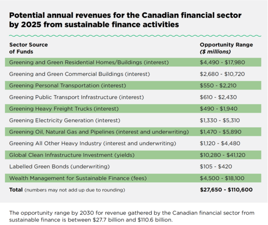 In an ambitious scenario, Corporate Knights estimates that by 2025 up to $110 billion in annual revenue will be available for Canadian financial institutions to reap.