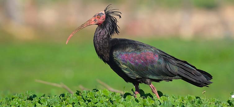 Today, there are around 90 birds. About one-third were born in the wild, and they learned migration routes from their parents or other older waldrapps. With their glossy black feathers, shocking pink, bald faces, and narrow feathers spiked atop their heads – punk-rock style – the birds have garnered many fans. “When you see the bird for the first time, you feel it’s ugly, but the more you see it, the more it’s fascinating,” says Fritz. The ugly-beautiful waldrapps are all carrying transmitters and they’re cheered along their migration route – virtually and, sometimes, in person.