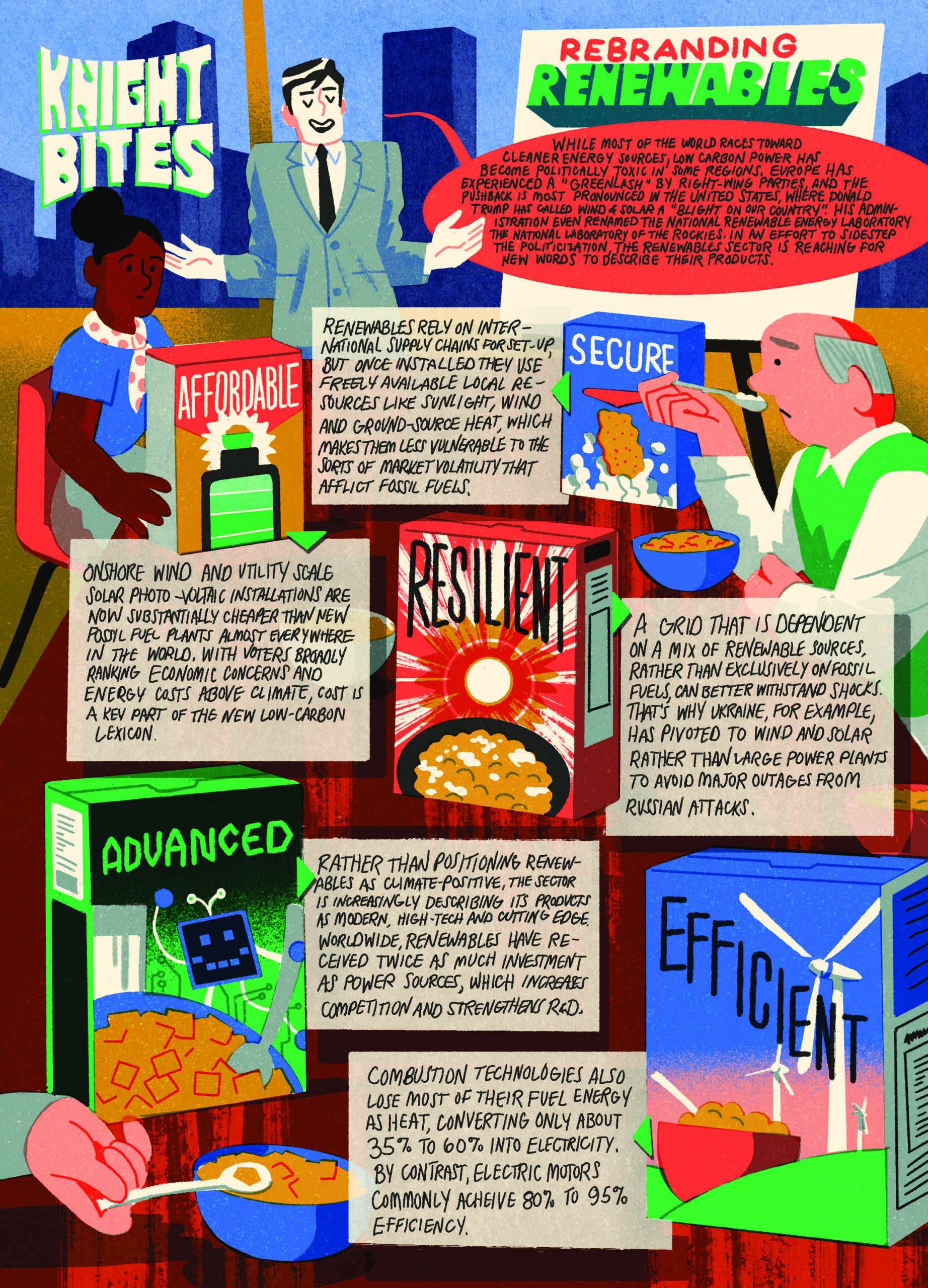 Rather than positioning renewables as climate-positive, the sector is increasingly describing its products as modern, high-tech and cutting edge. Worldwide, renewables have received twice as much investment as other power sources, which increases competition and strengthens.