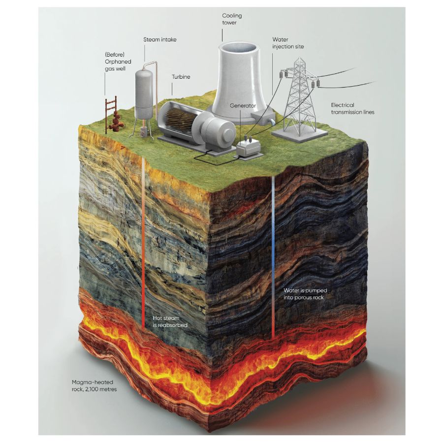 Tu Deh-Kah is not a traditional geothermal power-generating plant. For decades, geothermal has relied on the extreme heat of volcanic and high-temperature regions. But unlike the geyser-powered plants of Northern California or the volcanic heat of New Zealand, this project relies on a newer form of geothermal rooted in the sedimentary basin of Western Canada, which has traditionally housed rich oil and gas fields. “But there is a lot of heat in the earth,” says Jeremy O’Brien, the energy segment director for Seequent, a geoscience company that works closely with geothermal proponents to map the subsurface for geothermal projects.