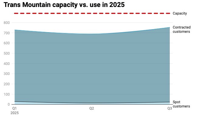 Those higher tolls might help explain another ingredient in Trans Mountain’s faltering financial picture: a dearth of so-called “spot” shippers — companies that pay a premium to use the pipe as desired but have no contractual obligations to the pipeline company.