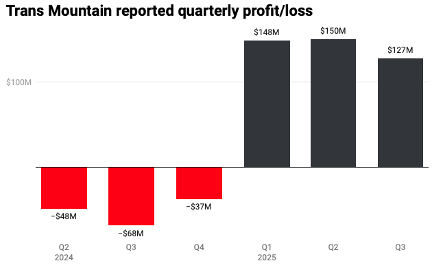 After the last infusion of cash, Trans Mountain’s profit streak began, and the company reported $148 million in profits in the first quarter of 2025.
