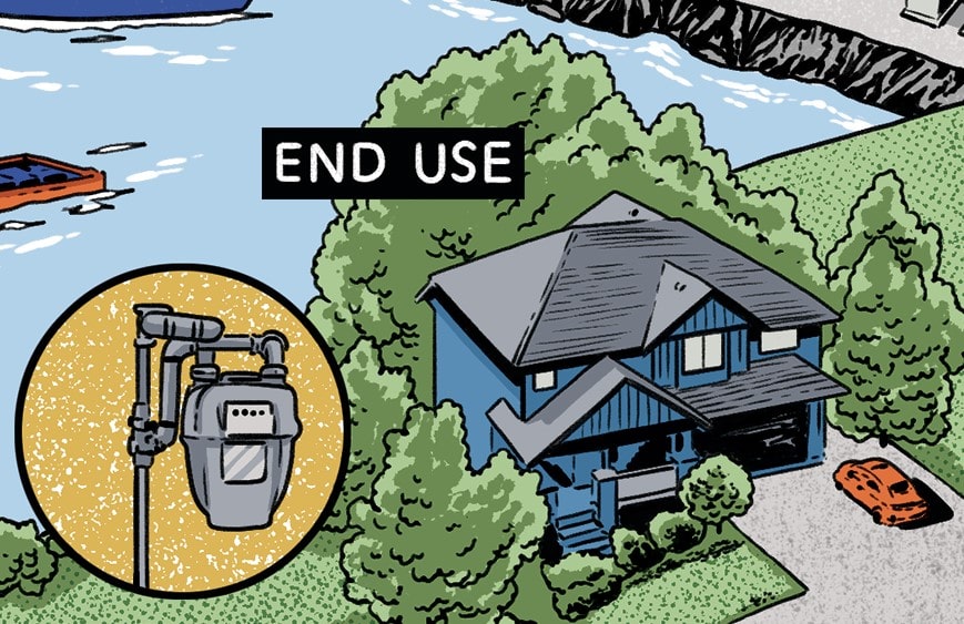 Methane escapes from the pipelines that carry the gas from production fields to processors to distributors and finally consumers. The U.S. EPA estimates losses of close to 1% from transportation and distribution systems. Losses also occur in ocean tankers when LNG evaporates or “boils off” from storage tanks, particularly on older ships.