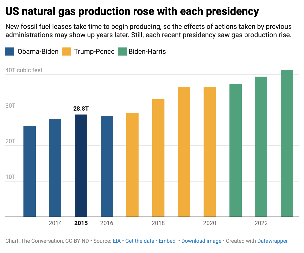 As a scholar who works on both energy and public policy, I follow the federal government’s actions involving oil, gas and coal. With Trump and Harris facing off in the November presidential election, let’s take a look at how each influenced fossil fuel production and emissions.