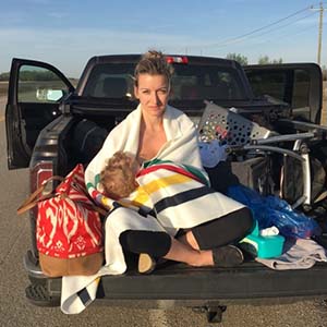 A photo of Sarah Heagy and Malcolm fleeing Fort McMurray, Alberta, on the morning of May 4, 2016.