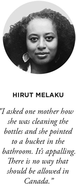 She was shocked. The women and their new babies who returned to the YMCA bore boxes of infant formula given them by the hospital. However, there were no facilities for sterilizing. “I asked one mother how she was cleaning the bottles and she pointed to a bucket in the bathroom,” Melaku says. “For me, it’s appalling. There is no way that should be allowed in Canada,” says Melaku, who organized a new group called the Black Birth Workers and Lactation Consultants to provide proper breastfeeding support to the new moms.