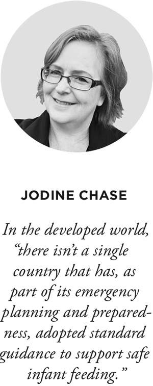 Being based in Edmonton, Chase was near the frontlines of the Fort McMurray fire. She organized a group of lactation counsellors who went to the Edmonton Expo Centre where thousands of evacuees had descended. Chase was dismayed at the palettes of donated powdered milk, as well as a dearth of private areas to nurse. Some moms, who had given birth in Fort McMurray only in the past day or two, were struggling to initiate breastfeeding. There was nowhere to boil water to sterilize feeding equipment. Meanwhile, viral gastroenteritis was sweeping the facility. The haphazardness of the situation, says Chase, highlights the lack of emergency preparedness and the danger it poses for infant and child health.