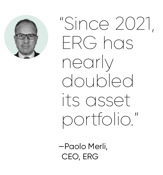“Since 2021, ERG has nearly doubled its asset portfolio, growing from approximately 2.1 gigawatts to nearly four gigawatts of installed capacity,” CEO Paolo Merli says. “This result was achieved through a balanced mix of organic developments and acquisitions.”