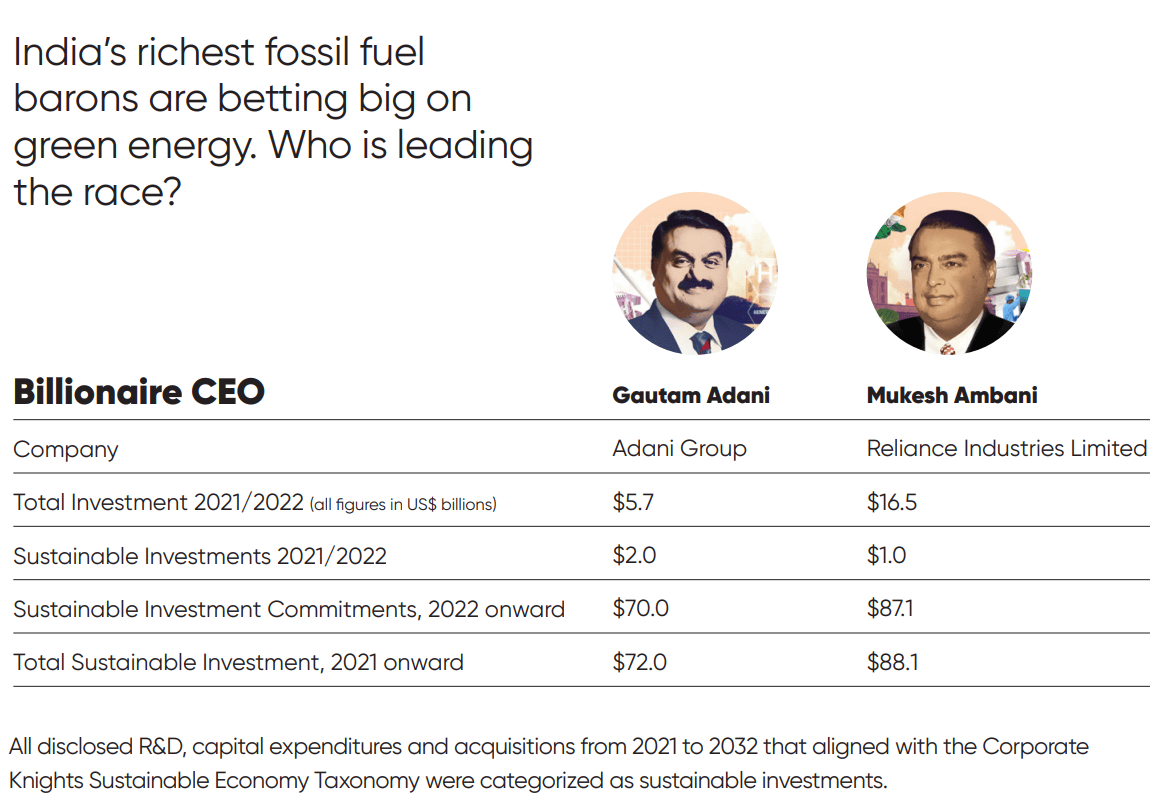 However, the two businessmen are not putting all their eggs into the green energy basket. Both are still investing heavily in their fossil fuel businesses.