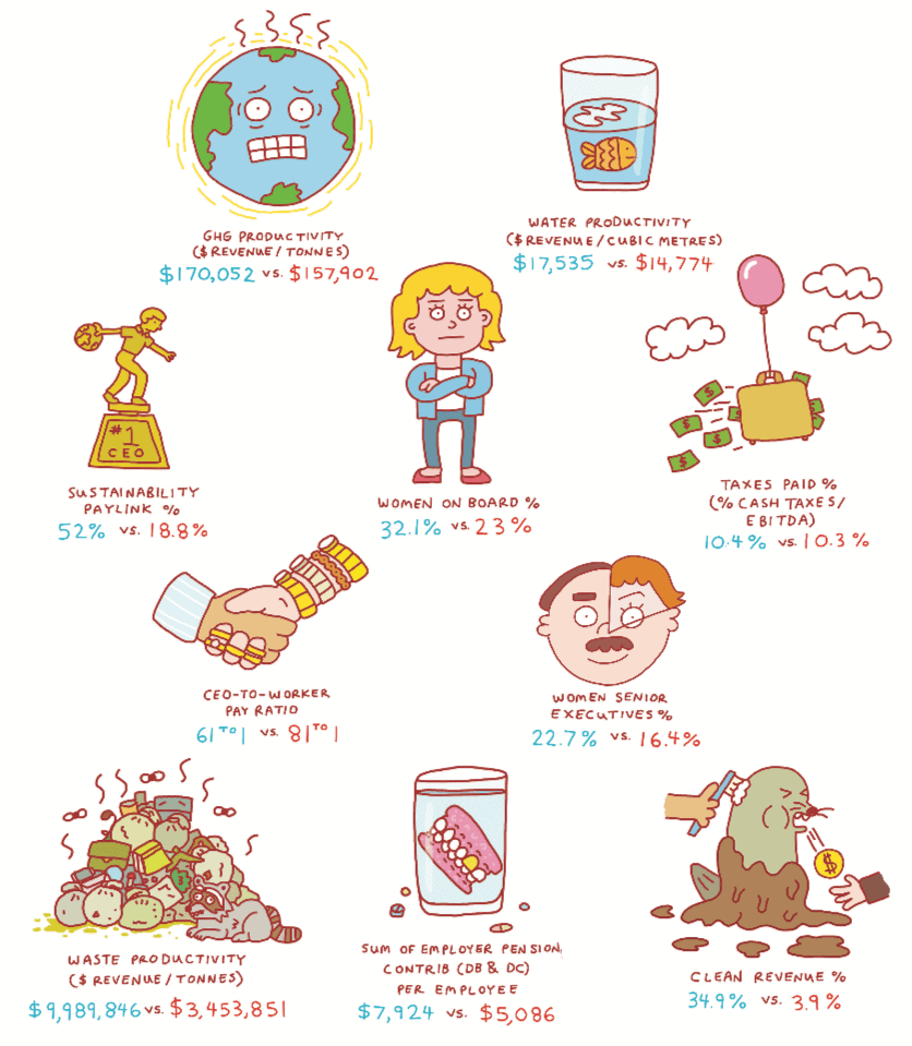 Knight Bites draws on the achievements of Canada's 50 best corporate citizens of 2019 to see how they compare to rest of Canada's large corporations. How do they fare on climate-cooking greenhouse gases, water productivity and waste? How female-friendly are their boards? Are CEO bonuses tied to sustainability metrics? We break it down by the numbers.