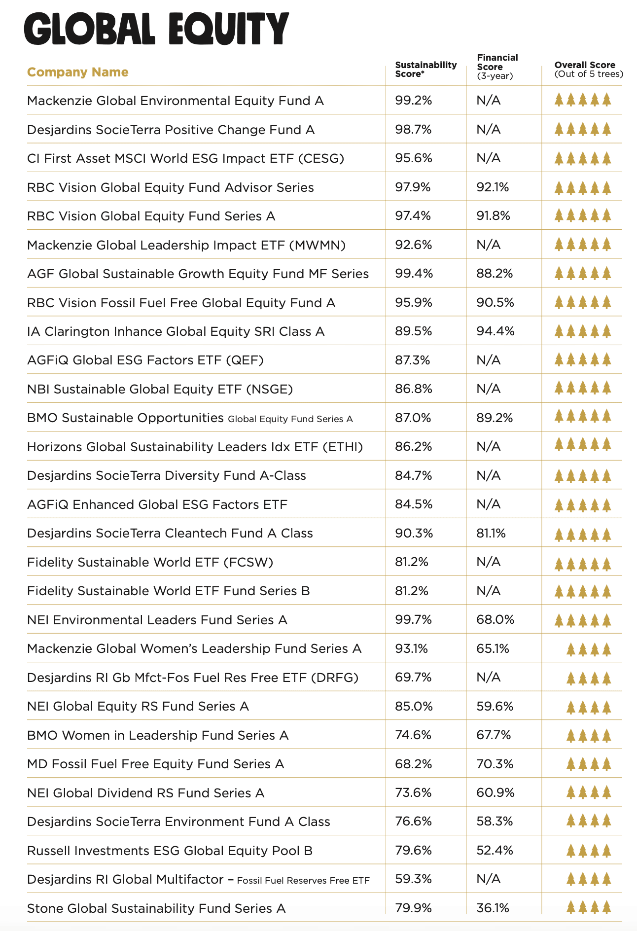 Corporate Knights ranked more than 1,000 mutual funds and ETFs based on their financial and sustainability performance and ESG-aligned management commitments.