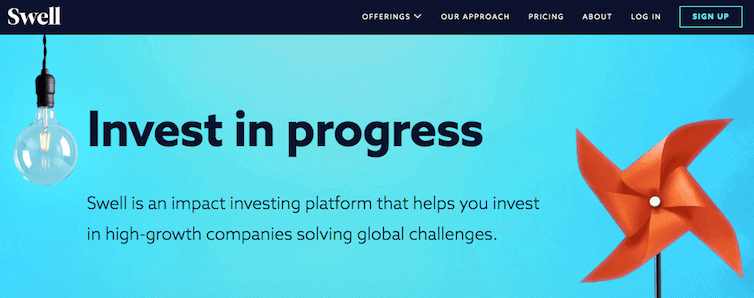 ★★ ★ ★ ★Shows how returns compare to business-as-usual:  Great example of how to be upfront about portfolio performance. Swell offers clear graphs on how each themed portfolio compares to S&P 500 (in case you’re wondering, they’re mostly beating benchmark).