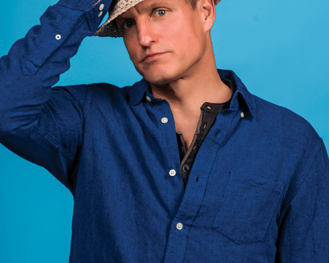 Woody Harrelson stands alone as he flips through the pages of a magazine, scanning the contents of articles while occasionally nodding his